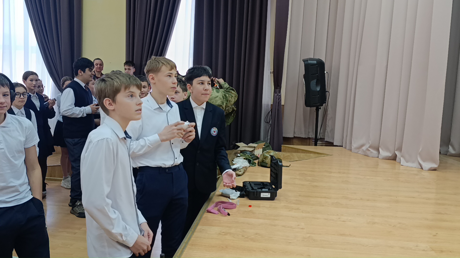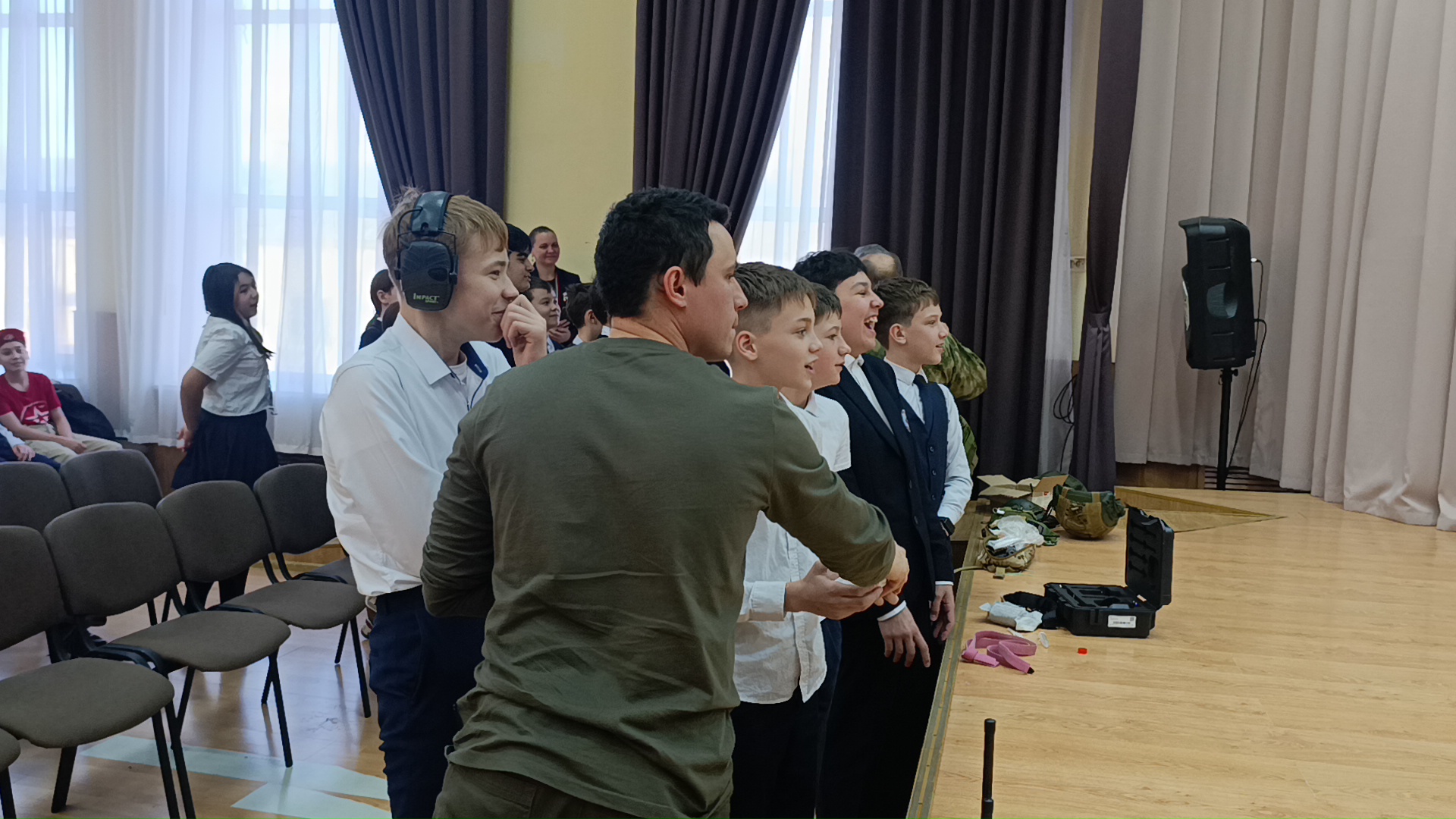 Очереднная встреча Ветеранов СВО нашей организации с учениками Школы №112 города Казани, на которой наши товарищи выступили с лекцией о патриотическом воспитании, рассказали ребятам про СВО, патриотизм и воинский долг. Дети с очень большим интересом надевали экипировку: бронежилет, каску, тактические наушники и т.д. Попробовали управлять игрушечным дроном, чтобы попробовать себя в роли оператора БПЛА.