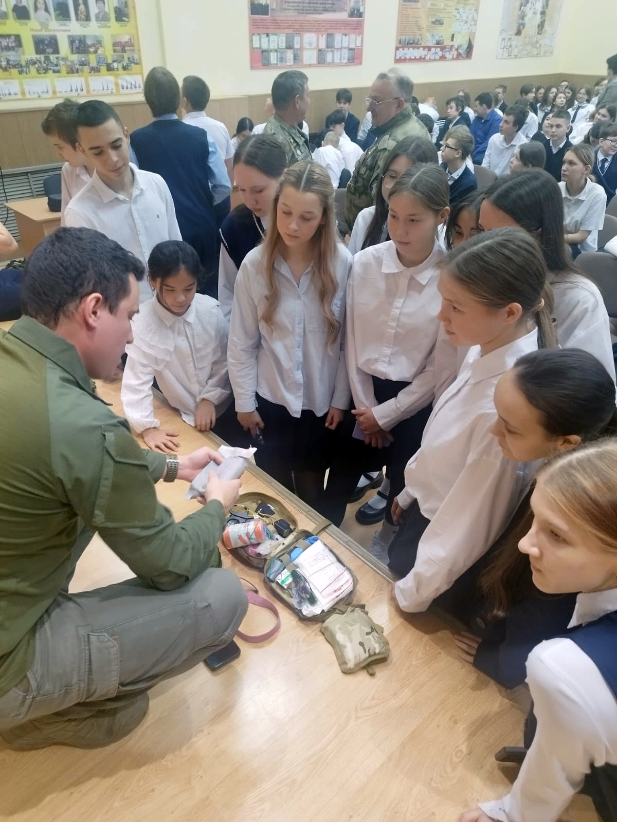 Сегодня в этот по-осеннему теплый декабрьский день, участники СВО посетили казанскую Школу №112, где встретились с учениками и поговорили на тему патриотизма и Специальной военной операции. Ребята познакомились с экипировкой российских бойцов, узнали о тактической медицине и поуправляли дроном.