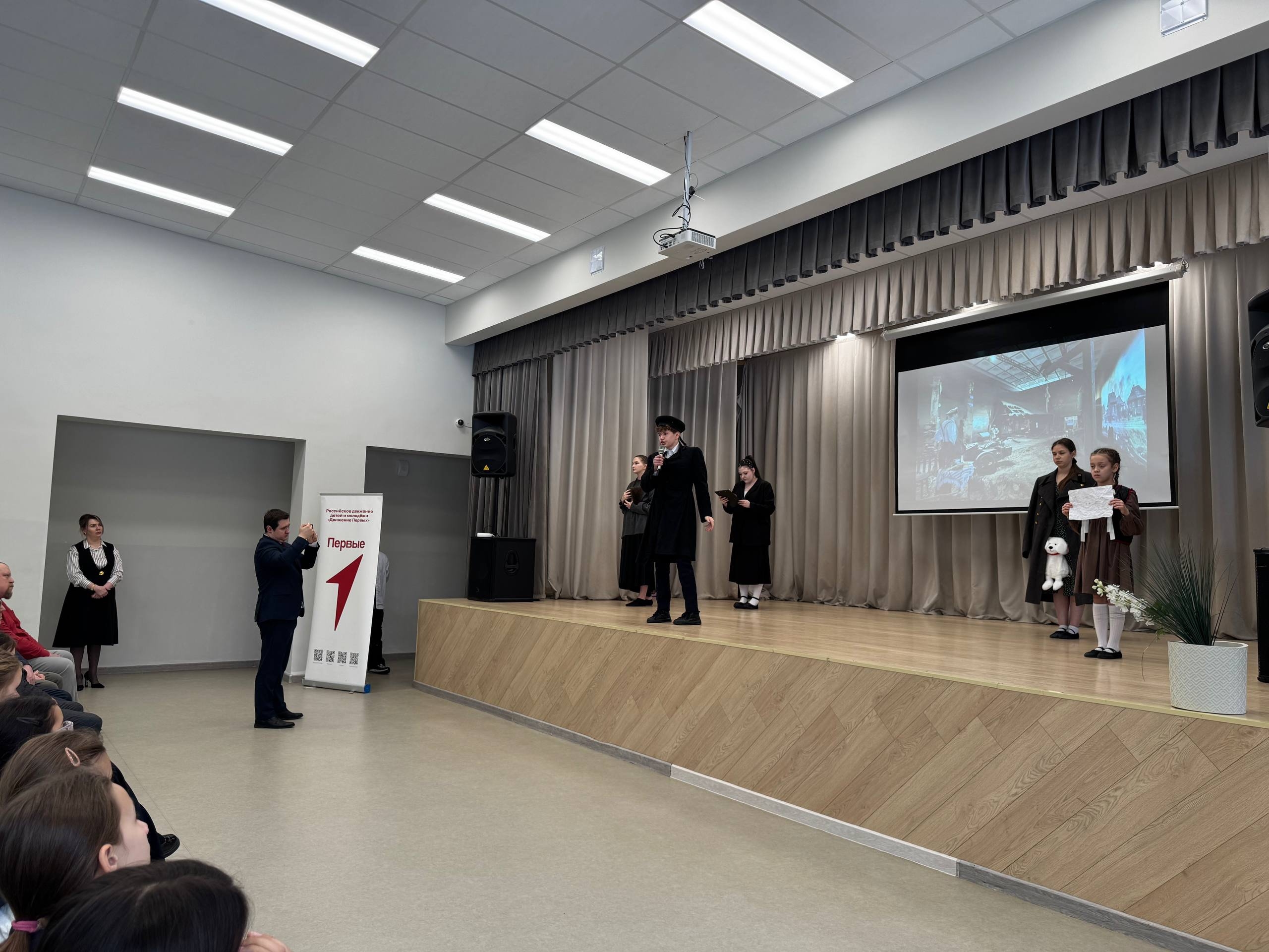 Ребята на сцене вживую передали атмосферу тех дней и трагически сложившиеся судьбы людей блокадного города. В дополнении к этому в школьном фое был оборудован уголок с экспонатами того времени, а лучшие рисунки учеников на тему блокады Ленинграда были размещены на специально отведенной школьной стене.